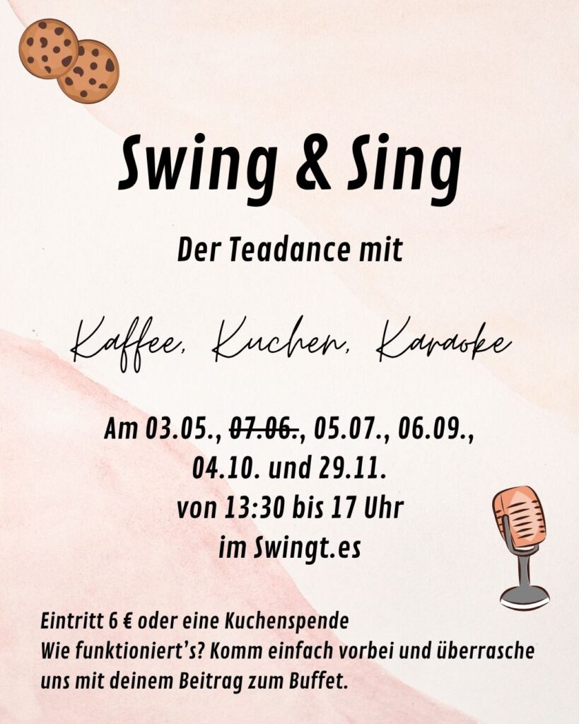 Der Eintritt zum anschließenden „Swing & Sing“- Teadance ist für Workshopteilnehmende frei.